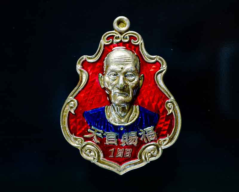เศียรหนุมานกันภัย เนื้อโลหะเพ้นท์สี รุ่นบูชาครู หลวงพ่อเปิ่น วัดบางพระ จ.นครปฐม ปี53 |