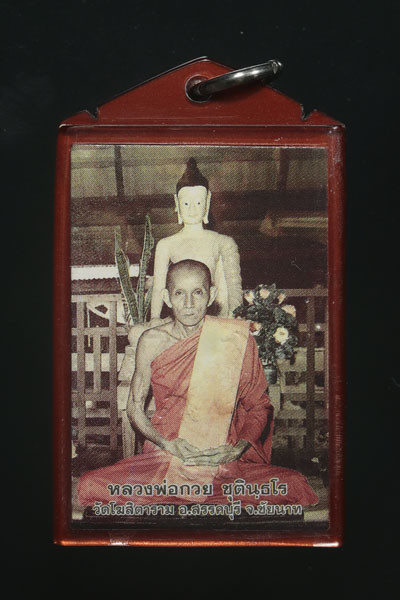รูปถ่ายข้างพัดยศ ฉากขาว หลังยันต์หมึก หลวงพ่อมุ่ย วัดดอนไร่ |