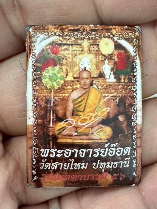 ล็อคเก็ตพิมพืสมเด็จ หลังโค๊ะหมู่บูชา พระอาจารย์อ๊อด วัดสายไหม หลัง มีจีวร เกศา ตอกหมายเลข 67 |