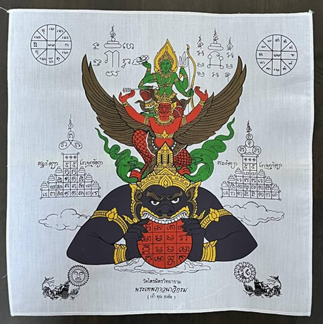 ผ้ายันต์นารายณ์ทรงครุฑประทับราหู เจ้าคุณธงชัย วัดไตรมิตรฯ |