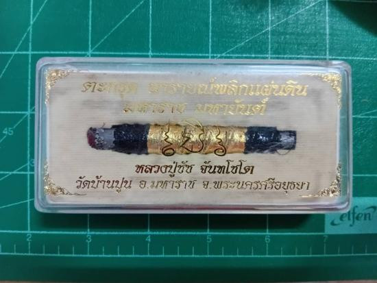 ตะกรุดลูกอม หลวงพ่อหยอด วัดแก้วเจริญ เนื้อเงิน ตอกโค๊ตภาษาจีน |