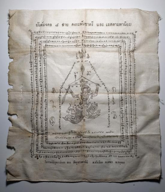 ผ้ายันต์หนุมาน มงคล 8 สาย วัดสุวรรณเจดีย์ อยุธยา พ.ศ. 2494 |
