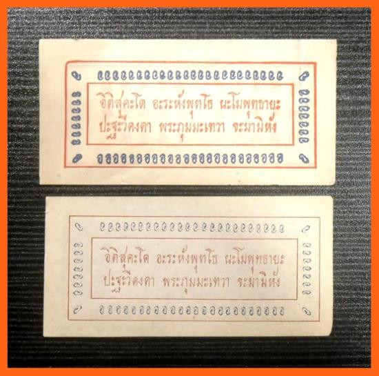 เก่าถึงยุค-นิยม หลังภาษาไทย+จีน 2แผ่น-150-กระดาษยันต์กันภัย หลวงพ่อโอภาสี (หายาก ขนาดประมาณ*9.5+5 ซม.* |