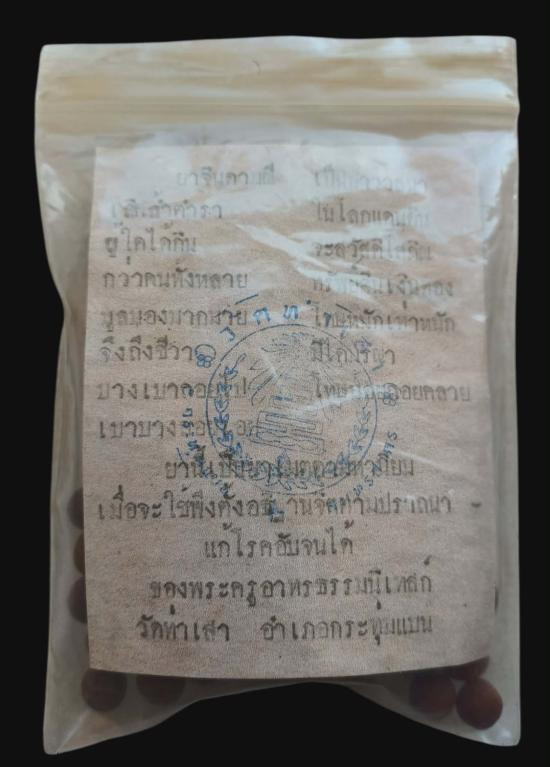 ยาวาสนาจินดามณี ถุงใหญ่ 100 เม็ด หลวงพ่อทองอยู่ วัดท่าเสา จ.สมุทรสาคร พร้อมใบฝอยเดิมๆ จากวัด เก่าเก็บเดิมๆจากวัด |