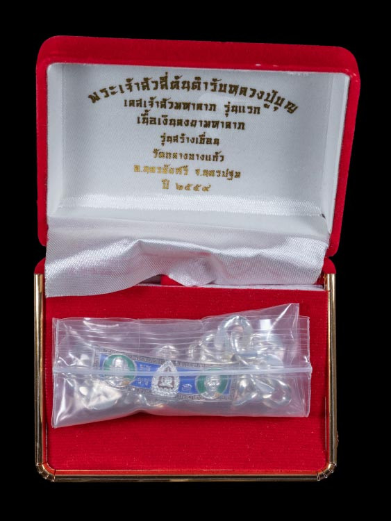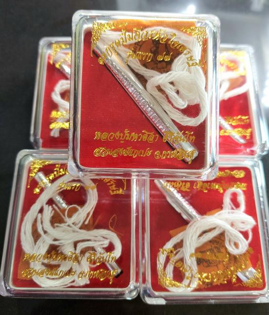 ตะกรุดเงิน ปั๊มจีวรหัวใจเศรษฐีรุ่นแรก 77 ยุคต้น หลวงปู่ศิลา สิริจันโท จำนวน 5 กล่อง |
