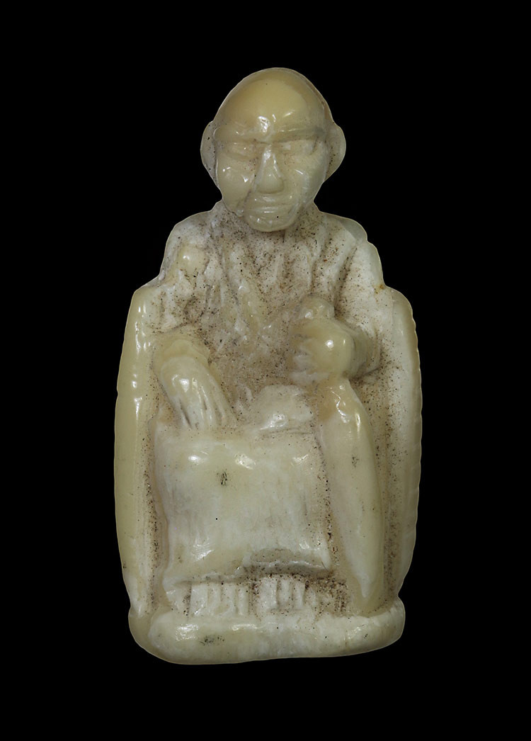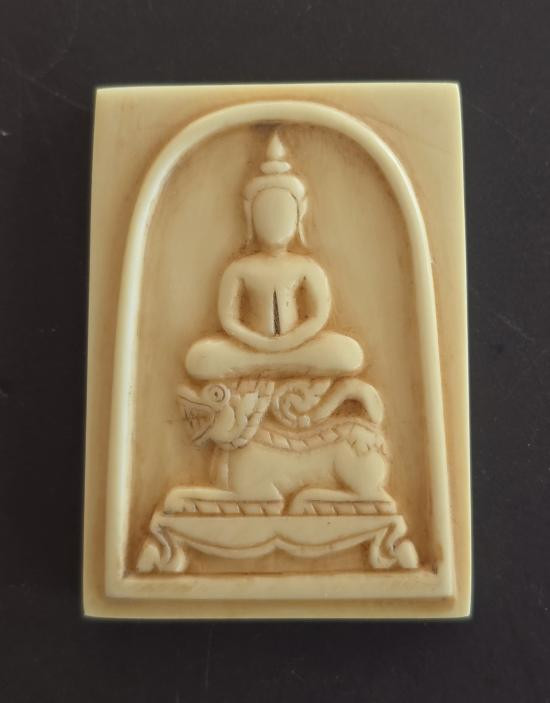 ยุคต้น ปี2470 ตัวจริง (หลวงพ่อเดิม วัดหนองโพ) "สิงห์ งาแกะ" ไม่มีแตกหัก "ดูง่ายๆ กระเช้าทอง โบราณ" |