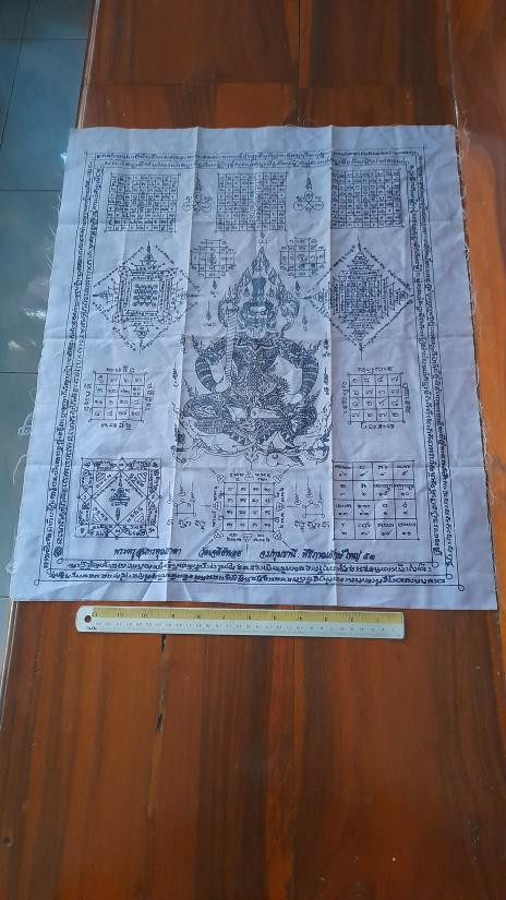 วัดใจเคาะเดียว......100.......ผ้ายันต์ท้าวเวสสุวรรณ หลวงพ่อทองกลึง วัดเจดีย์หอย ปทุมธานี ผืนใหญ่ ขนาด 19 x 23 นิ้ว |