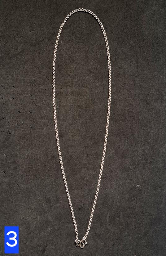 วัดใจ No.3 สร้อยเลสเก่า ตอก100% ลายห่วงคู่ ยาว2ฟุตครับ |