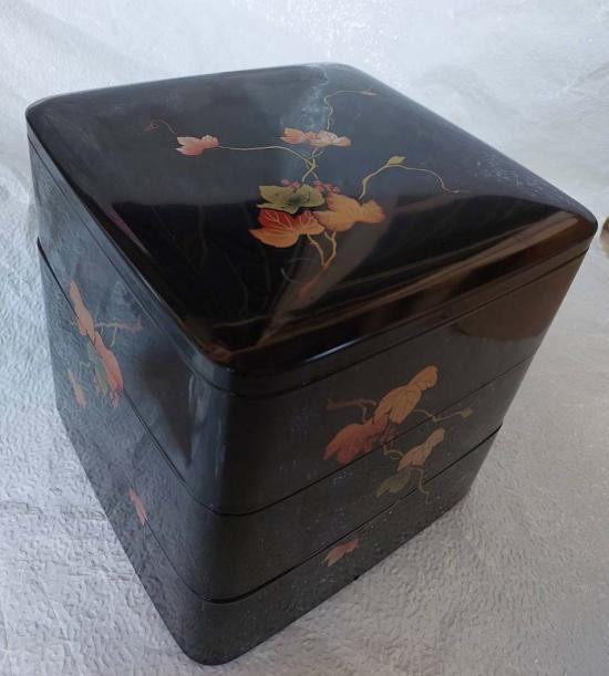 ***วัดใจ***กล่องไม้เคลือบแล็กเกอร์สีดำสไตล์ญี่ปุ่น แบบซ้อนกัน 3 ชั้น จูบาโกะ (Jūbako) |