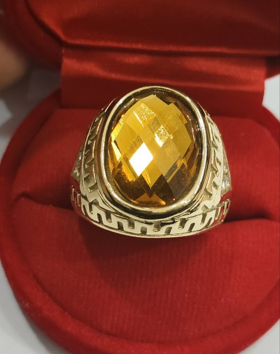 เทขาดทุน++เทปีใหม่++แหวนทองชุบยิงเลเซอร์ แหวนมหามงคลเสริมบารมี หัวพลอยบุษราคัม สวยมาก สวยๆ |