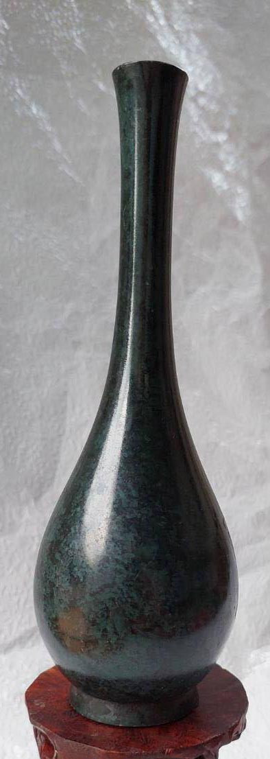 ***วัดใจ***แจกันเก่าเก็บเนื้อสำริดเคลือบผิวสีเทอร์คอยส์ งานของญี่ปุ่น สูง 7.5 นิ้ว |