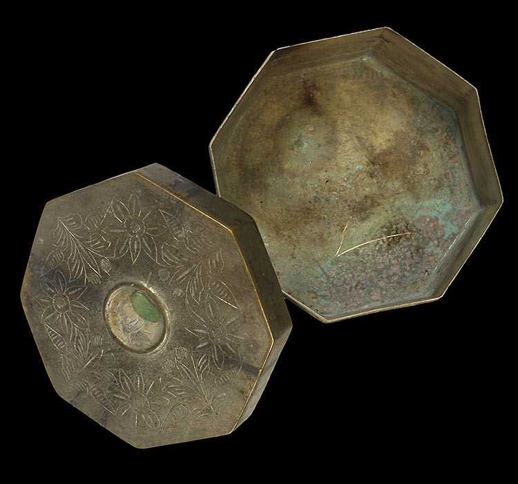 เคาะเดียวแดง_ตลับแปะตั้งใส่เหรียญทรงเสมาสภาพดี_ขนาดตามภาพ |
