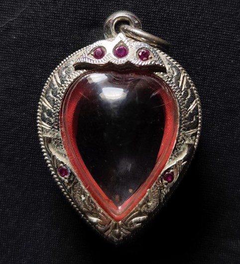 ตลับเงินชุบทองคำขาวฝังพลอย มือสอง สำหรับใส่ดาวนายสิบ หลวงพ่อผินะ |