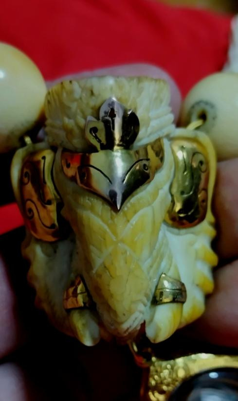 เคาะเดียว สร้อยงาเม็ดกลม10mm. ของใหม่ ลายชัดๆ ยาว2ฟุต สวมหัวได้ครับ |