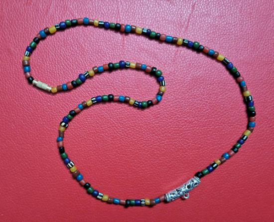 สร้อยคอลูกปัดทราวดี ลูกปัดโบราณสวยๆ ความยาว 24 นิ้ว สวมหัวได้หรือหมุนเกลียวทองเหลืองถอดออกก็ได้ สามารถห้อยพระได้ 1 องค์ (กท.17) |