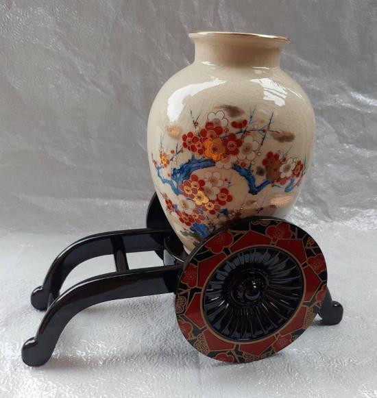 กี๋/ฐานไม้ญี่ปุ่น สีดำลายเส้นเงิน-ทอง งานเครื่องเขินเคลือบเงา เป็นงานหัตถกรรมญี่ปุ่นโบราณที่มีชื่อเสียง |