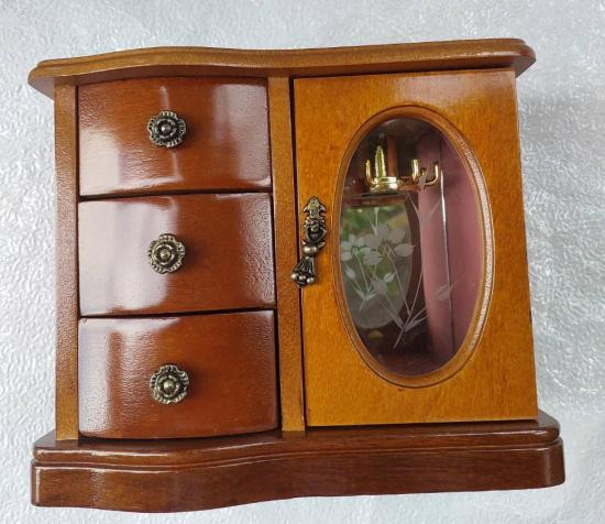 ***วัดใจ***กล่องเครื่องประดับ ขนาดเล็ก เนื้อไม้วินเทจญี่ปุ่น งานฝีมือเก่า 3 ลิ้นชัก 1 บานเปิด ขนาด กว้าง 22 ลึก 12 สูง 18 CM. |