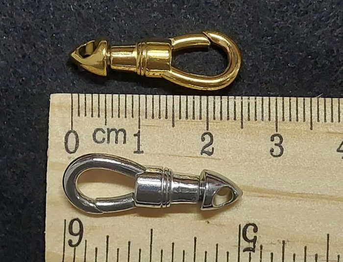 สปริงก้ามปูสแตนเลส + สปริงก้ามปูสแตนเลสเลเซอร์ทอง หมุนได้ ขนาดไม่รวมห่วง 2.6 ซ.ม. |