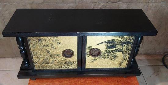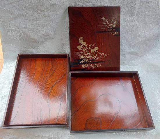 กี๋/ฐานไม้ญี่ปุ่น สีดำลายเส้นเงิน-ทอง งานเครื่องเขินเคลือบเงา เป็นงานหัตถกรรมญี่ปุ่นโบราณที่มีชื่อเสียง |
