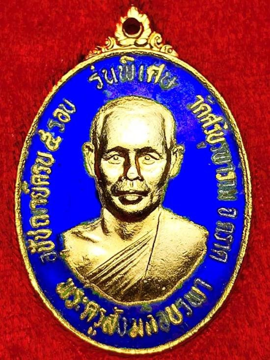 เคาะเดียวแดง.....เหรียญหลวงปู่บัว วัดศรีบูรพาราม ปี 2533 เนื้อกะไหล่ทองลงยา |