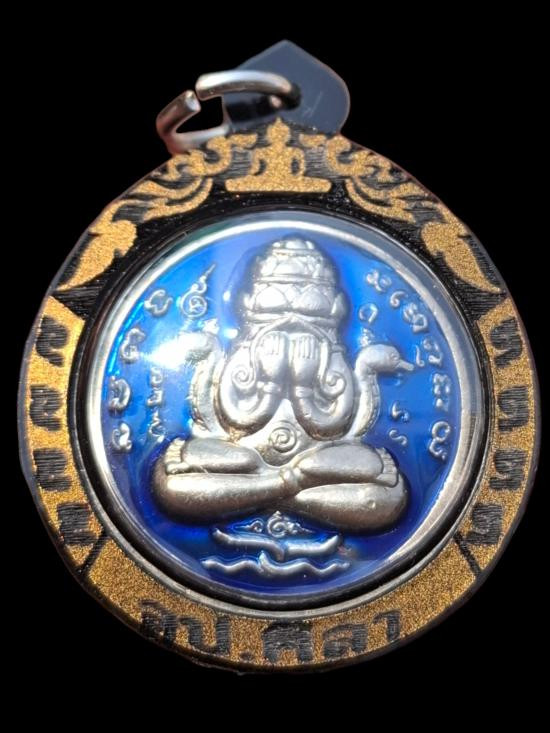 พระปิดตานาคปรก หลวงปู่หงษ์ วัดเพชรบุรี ที่ระลึก 76 ปี รุ่นพร หมคุณ ปี 2537 เนื้อผงใบลาน พร้อมกล่องเดิม