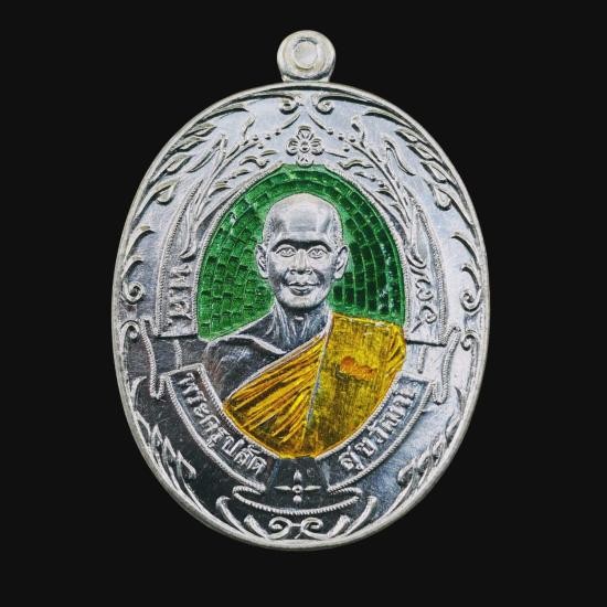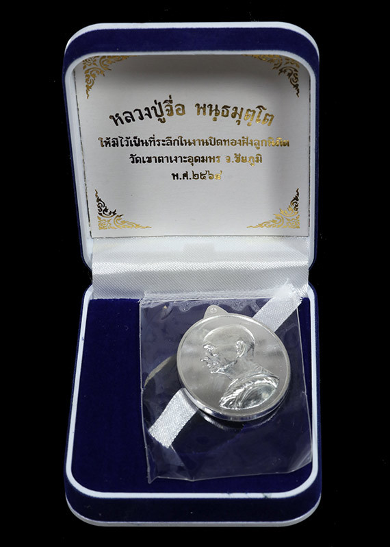 พระอาจารย์ต้อม วัดท่าสะแบง จ.ร้อยเอ็ด รุ่น อุดมทรัพย์ เหรียญรูปไข่ พิมพ์แกะสด ชุดนำฤกษ์ เนื้อเงิน ลงยาจีวร ต๊อกโค๊ตพิเศษ (หลังยันต์องค์) จัดสร้าง 39 เหรียญ ต๊อกโค๊ต 37 พร้อมกล่องเดิม