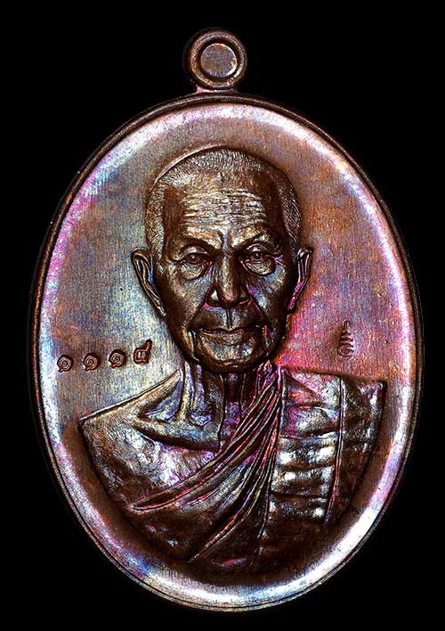 เหรียญพรปีใหม่ทิพพมนต์ พระอาจารย์ต้อม วัดท่าสะแบง จ.ร้อยเอ็ด เนื้อ ทองแดงมันปู ซีนเดิม