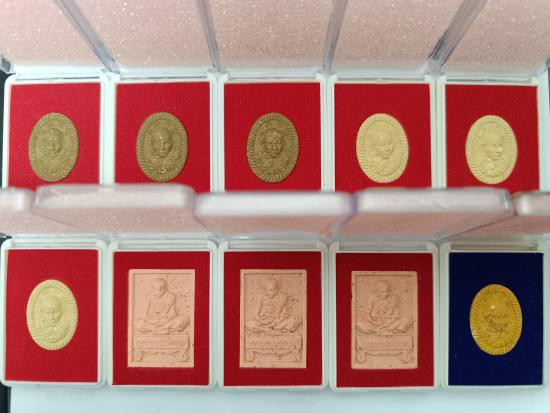 พระอาจารย์ต้อม วัดท่าสะแบง จ.ร้อยเอ็ด รุ่น อุดมทรัพย์ เหรียญรูปไข่ พิมพ์แกะสด ชุดนำฤกษ์ เนื้อนวะ หน้ากากทองคำ (หลังพรหม) จัดสร้าง 130 เหรียญ ต๊อกโค๊ต 64 พร้อมกล่องเดิม