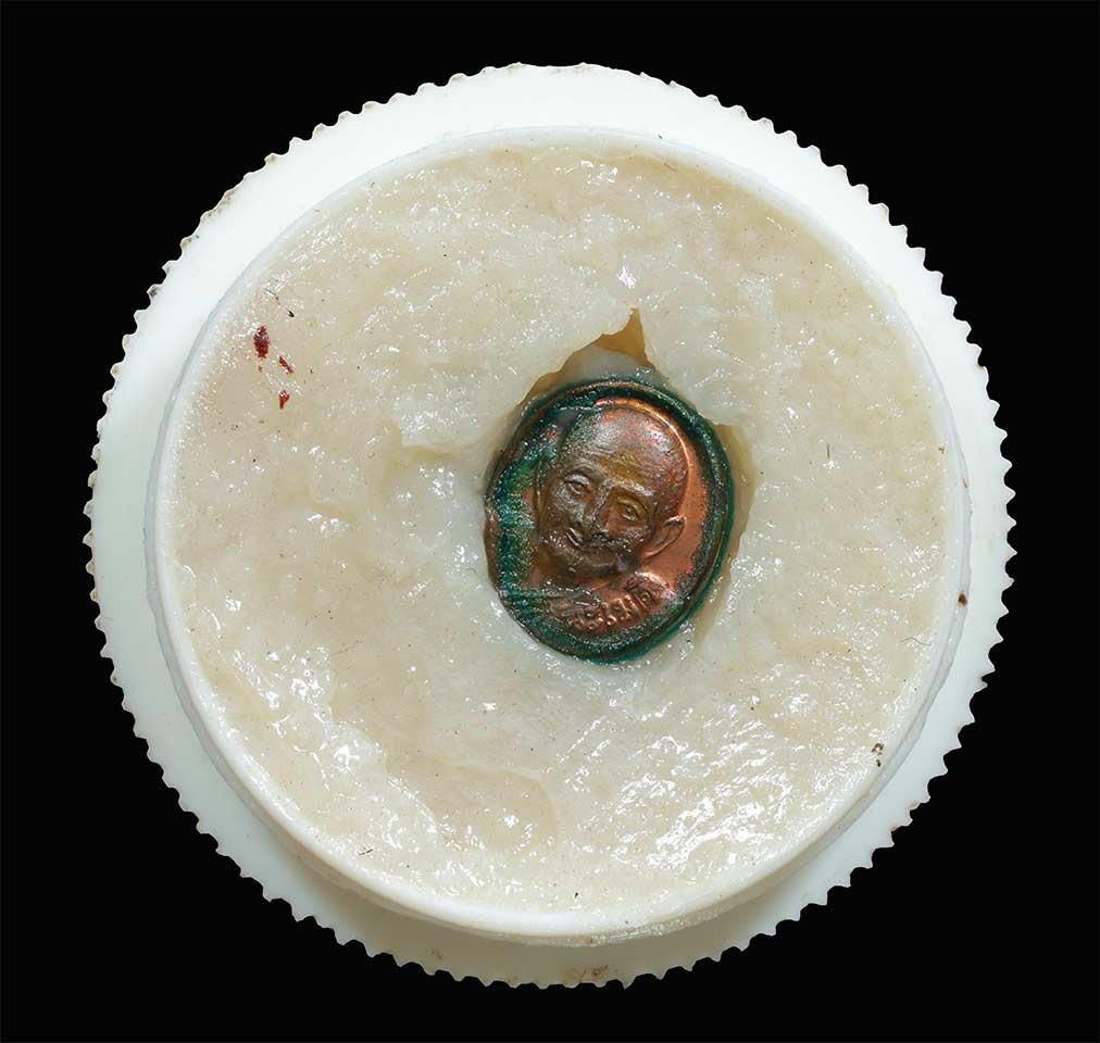 หลวงปู่จื่อ วัดเขาตาเงาะอุดมพร จ.ชัยภูมิ หลวงปู่จือ รุ่น ชนะจน พระดีพิธีใหญ่ ลังมหาชนวน รวมชนวนมวลสารหลอมต่างหากเนื้อชนวน โปรยผงทอง |