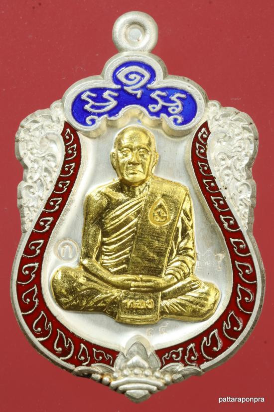 เหรียญเสมาหลวงพ่อทอง รุ่นทองสิบทิศ ปี 2563 เนื้อเงินลงยาขอบ หน้าทองคำ หมายเลข 14 |