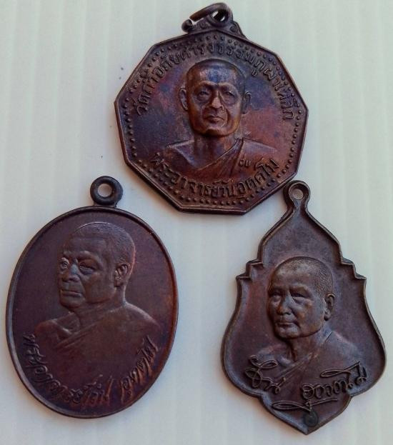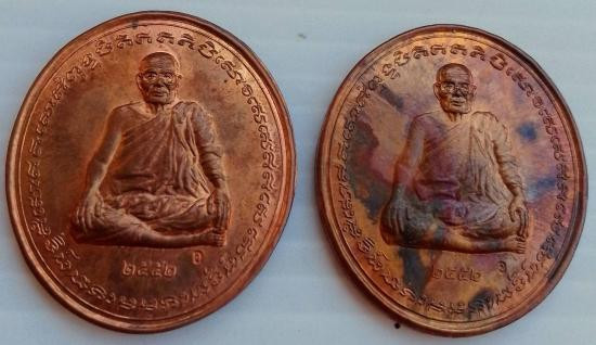 วัดใจเหรียญรุ่นแรก พระอาจารย์อ่อน (หลวงปู่อ่อน ญาณสิริ) วัดป่านิโครธาราม อุดรธานี ปี2517 เนื้อทองแดงชุบนิเกิ้ลกะไหล่เดิมๆๆ และเหรียญทองแดงสวยเดิม (ตอกโค็ต) |
