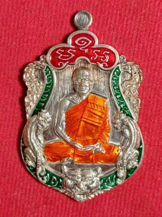 พระอาจารย์ต้อม วัดท่าสะแบง จ.ร้อยเอ็ด รุ่นรวยนะ9ดี พิมพ์เสือคู่บารมี ( เนื้อเงินลงยาแดงฝังพลอยเขียว ) No.126 พร้อมกล่องเดิม |