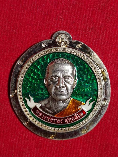 รุ่นแรกเหรียญขวัญถุง มหาโชคมังกรคู่ หลวงพ่อทอง สุทธสีโล ออกวัดบ้านไร่ ปี 62 เนื้อ เงินลงยาสีเขียวพิมพ์กรรมการไม่ตัดปีกหลังยันต์ หมายเลข 16 ตอกโค๊ตเลข 9 เก้าตัว เคาะเดียวแดง |