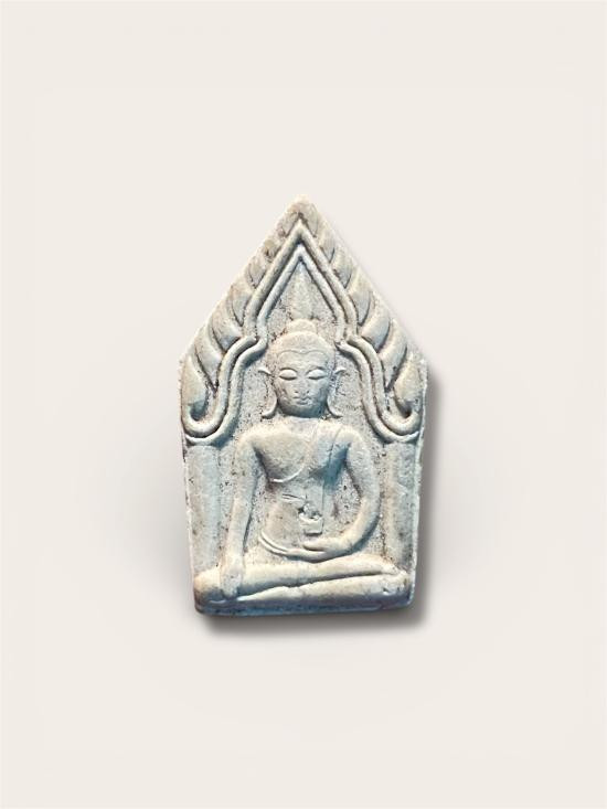 พระหล่อโบราณพิมพ์สมเด็จปรกโพธิ์สะดุ้งกลับฝาบาตร...หลวงปู่คำพันธ์ วัดธาตุมหาชัย จ.นครพนม รุ่นมหาชัย เนื้อเงิน |
