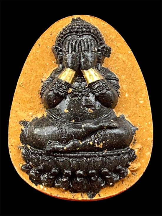 !! เคาะเดียว !! พระขุนแผน รุ่น ล้านรวยรวย หลวงปู่ศิลา สิริจันโท สวนสงฆ์แกเปะ เนื้อวานไพรดำสนิมแดง ตะกรุดทอง 3 ดอก หลังตะกรุดทอง 3 1ดอก No 15 |