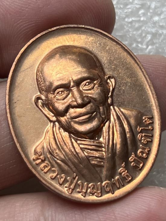 เหรียญรูปไข่ ครึ่งองค์ รุ่นแรก เนื้อทองแดง รุ่นศตวรรษ มหามงคล ๑๐๐ ปี หลวงปู่บุญฤทธิ์ วัดสวนป่าบุญฤทธิ์ ปี2556 ผิวไฟกล่องเดิม |