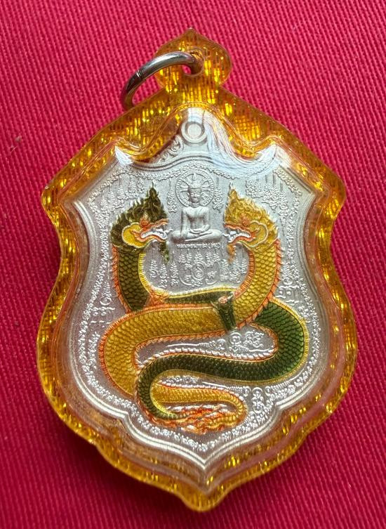 !!!วัดใจ!!!เหรียญอายุวัฒนมงคล81 หลวงปู่ศิลา สิริจันโท พิมพ์มังกรคู่ เนื้อฝาบาตรลงยาแดงขอบเงิน หมายเลข 1260 พร้อมกล่อง |