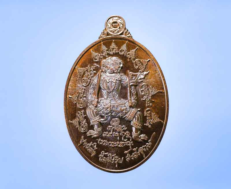 เหรียญท้าวเวสสุวรรณ รุ่นมหาเศรษฐี อีสาน หลวงพ่อทอง วัดบ้านไร่ จ.นครราชสีมา ทองเงินลงยาแดง หมายเลข ๕๘ น้ำหนักเงิน 17.82กรัม กล่องเดิม |