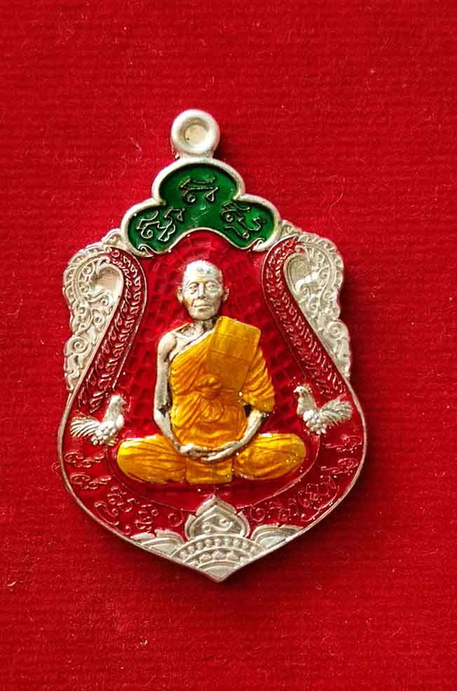 เหรียญเจริญพรเมตตามหานิยม หลวงปู่นิยม กมโล เนื้อเงินลงยาแดงไม่ตัดปีก หลังแบบ ๙รอบ กรรมการ no ๓ ควัดแจ้งนอก ปี 2555 |