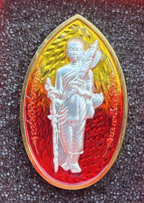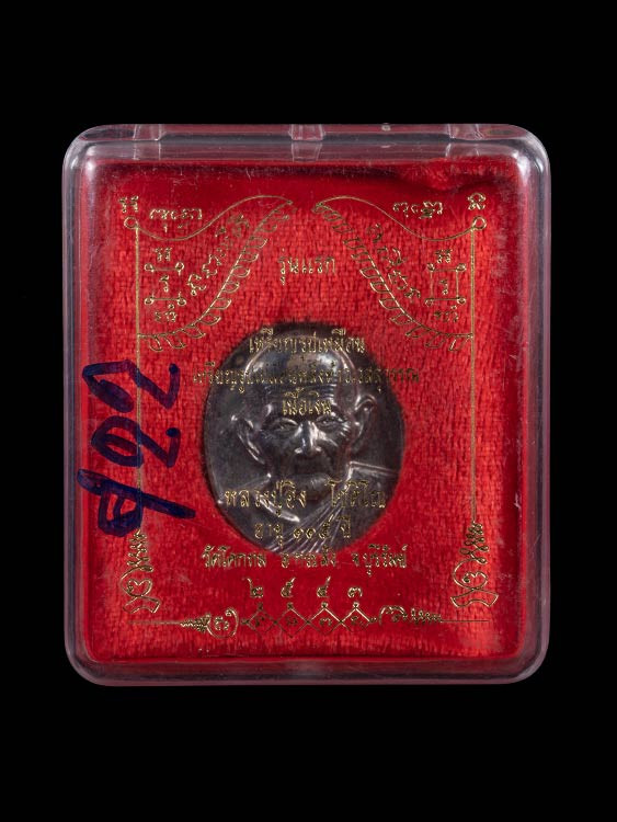 หลวงปู่เถิง วัดบ้านอาลัย อำเภอกันทรลักษ์ จังหวัดศรีสะเกษ รุ่น หัวใจสิวลี ชุบทอง 24 K หน้ากากเงิน เลข 111 |