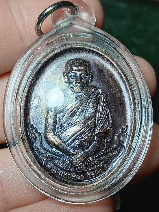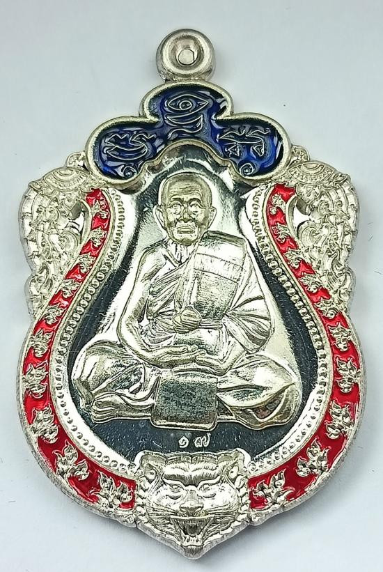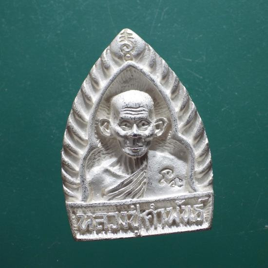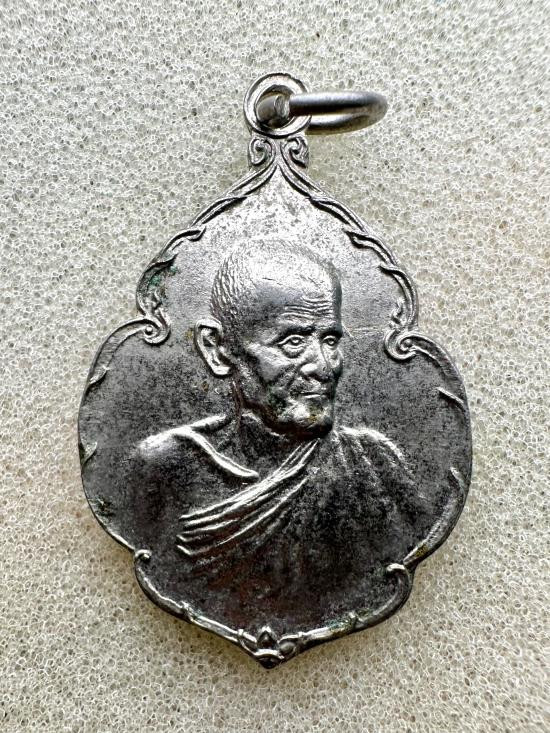 หลวงปู่เถิง วัดบ้านอาลัย อำเภอกันทรลักษ์ จังหวัดศรีสะเกษ รุ่น หัวใจสิวลี เนื้อนวะโลหะ หน้ากากเงิน หลังอุดมวลสาร |