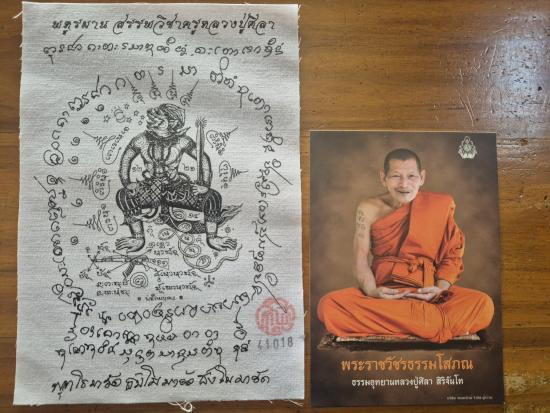 วัดใจ หลวงปู่ศิลา รุ่น รวยรวยล้านเทวดารักษา เนื้อแปะตั้งหน้ากากทองทิพย์ หลังพหูรมาน No.223 |