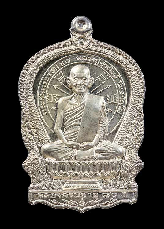 หลวงปู่คำพันธ์ โฆสปัญโญ รุ่นอภิมหาทรัพย์ เนื้อเงิน หมายเลข 2569 + กล่อง |