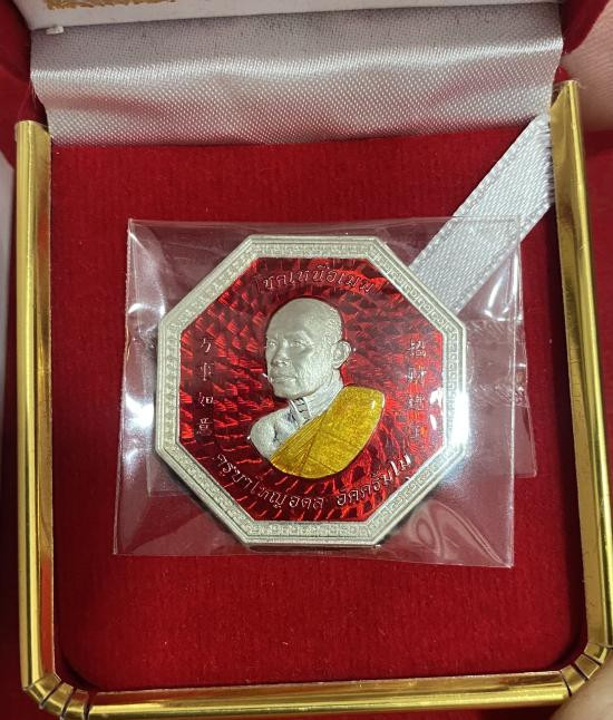 เหรียญโชคเหนือเมฆ เนื้อเงินลงยาแดง เลข 154 หลวงพ่ออุดล (ครูบาใหญ่อุดล) อคฺคธมฺโม วัดป่าดงเมือง จ.กาฬสินธุ์ 2567 |