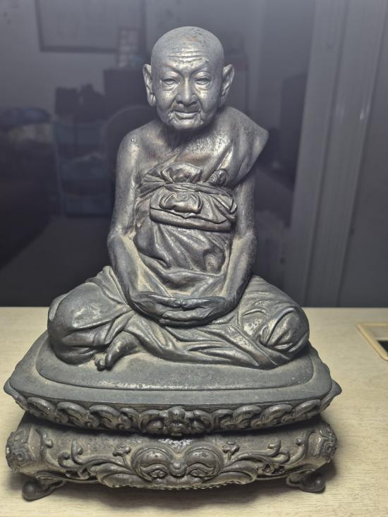 พระบูชาหลวงปู่หงษ์นั่งฐานสิงห์ เนื้อ : โลหะรมดำ ขนาดหน้าตัก 5 นิ้ว ปี 2555 ใต้ฐานบรรจุมวลสารศักดิ์สิทธิ์มากมาย |