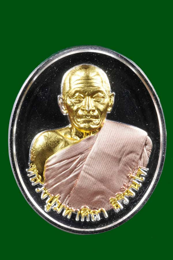 หลวงมหาปู่ศิลา รุ่นจงเจริญ เนื้อเงินหน้ากากทอง เลข70 ไม่มีกล่องเดิม |