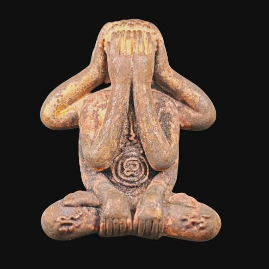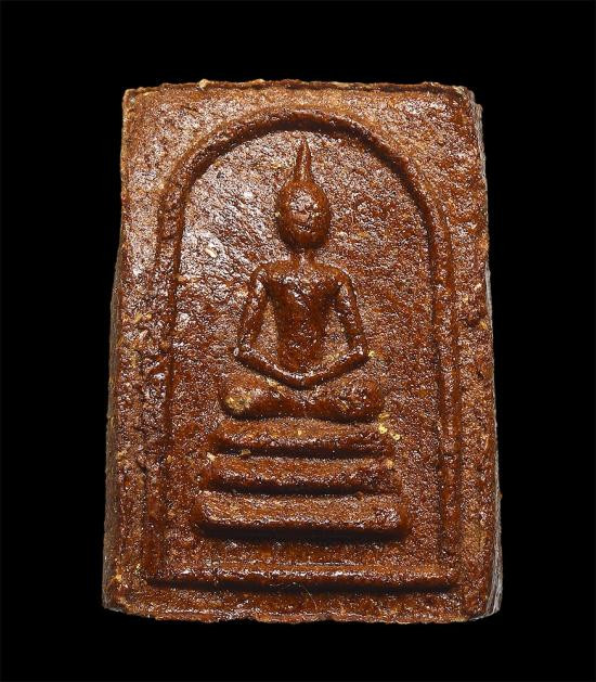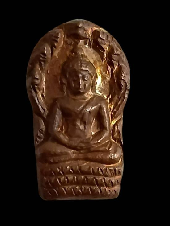 พระปรกใบมะขามรุ่นแรกหลวงปู่ชอบ ฐานสโม ปี ๒๕๓๓ เนื้อทองแดงผิวไฟ |