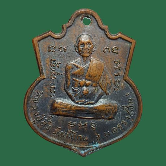 วัดใจ หลวงพ่อทอง เหรียญรุ่นแรก ทองแดงมันปู ยันต์แปด เลข7252 พร้อมเลี่ยม มีห่วงเดิม จารมือ |