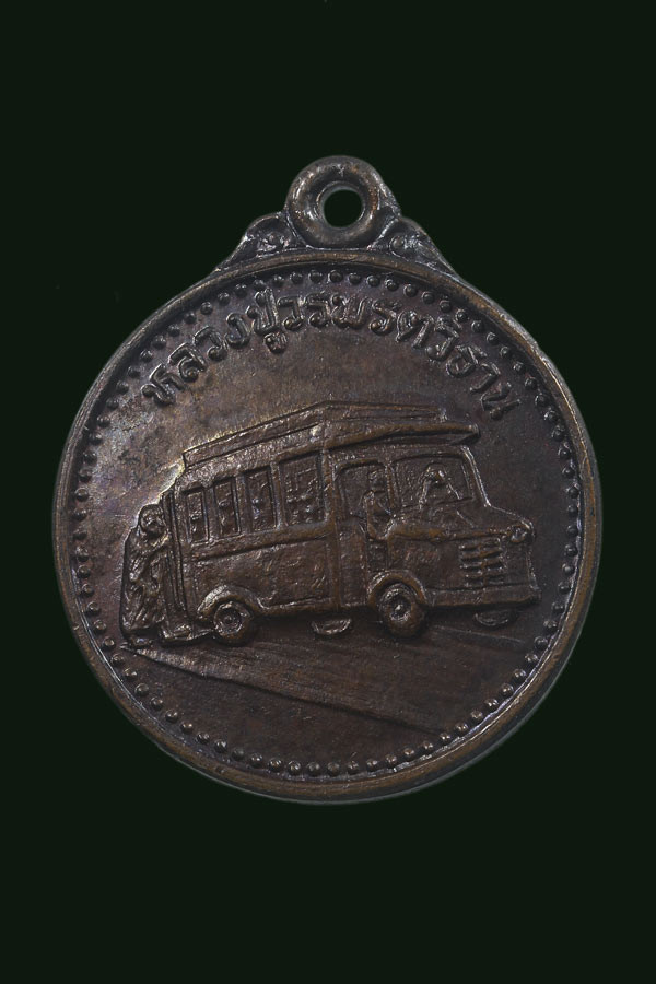 เหรียญเหยียบรถกระดกรุ่นแรก หลวงปู่วรพรตวิธาน วัดจุมพล จ.ขอนแก่น พ.ศ.๒๕๓๔ |
