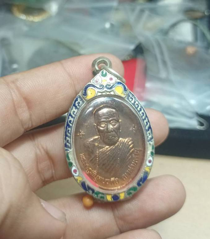 หลวงปู่คำพันธ์ วัดธาตุมหาชัย จ.นครพนม เหรียญบาตรน้ำมนต์ กะหลั่ยทองลงยาสีน้ำเงิน |